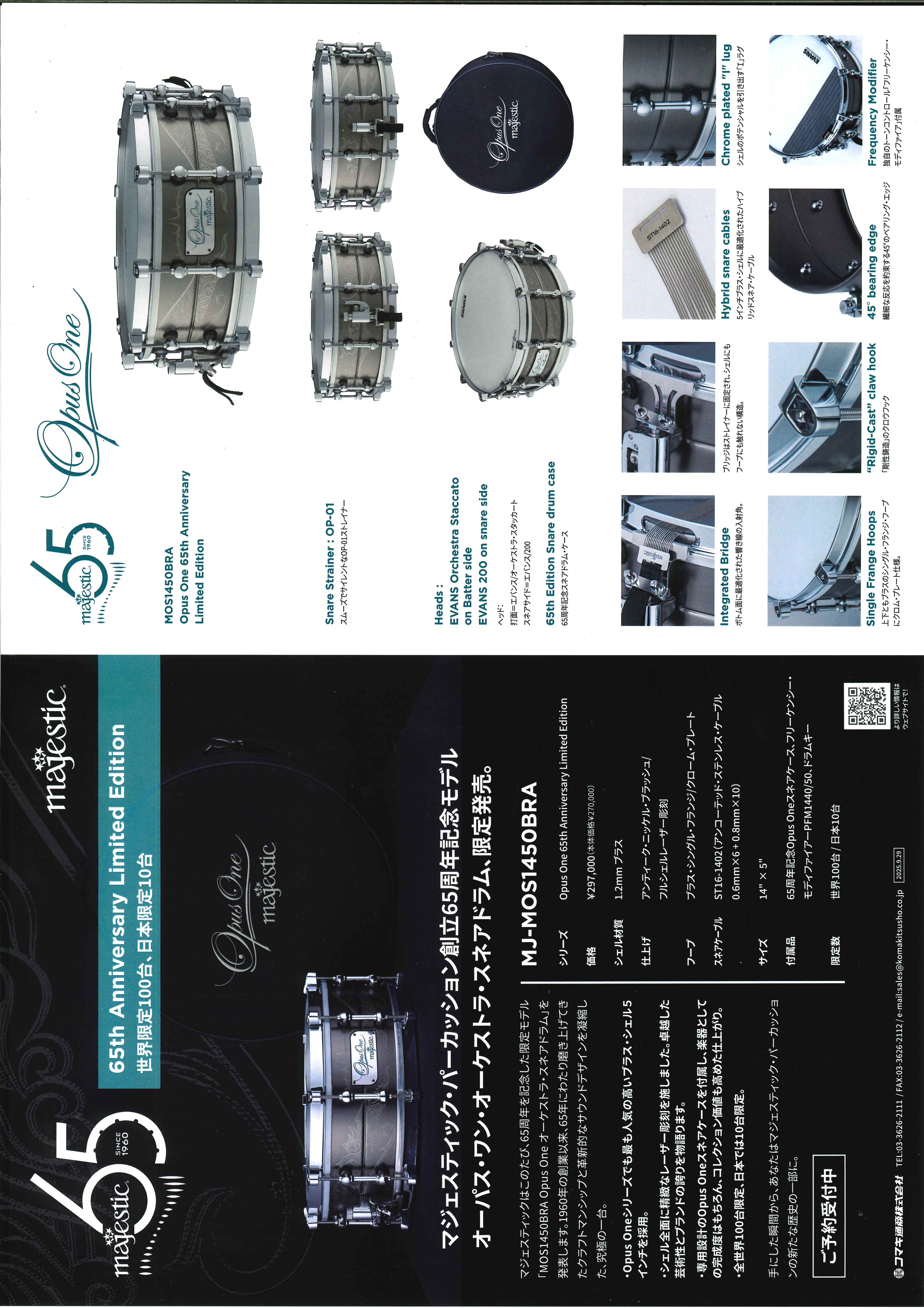 オーケストラ・スネアドラム マジェスティック・パーカッション創立65周年記念モデル入荷!