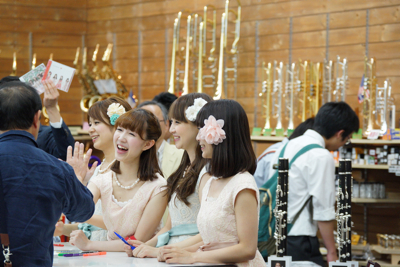 サインを求めるお客様一人ひとりに4人全員がにこやかに