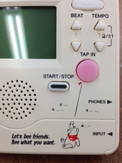 通常透明なこのボタン、プーさんバージョンのみピンク色。