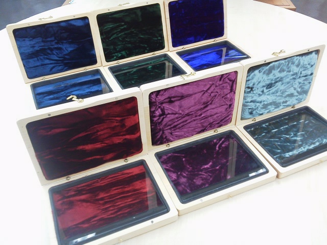 手前右から→クラレット(濃赤)・パープル・チャコール(灰)