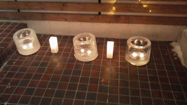 入り口にアイスキャンドルを置きました