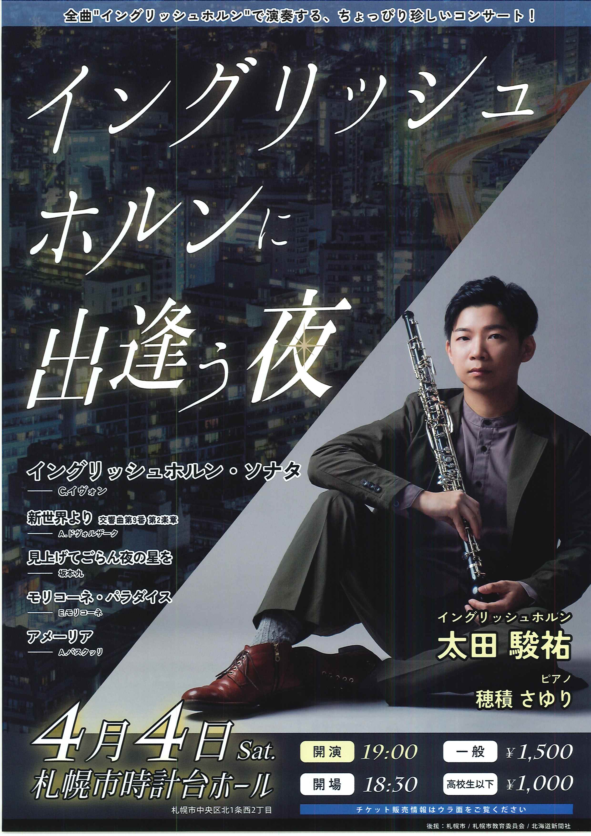イングリッシュホルンに出逢う夜 開催日2026年04月04日(土)開場18:30開演19:00会場札幌市時計台ホール料金当日:¥1,500高校生以下¥1,000当店での チケット取扱い無し 出演■太田 駿祐(イングリッシュホルン) ■穂積 さゆり(ピアノ)備考公式WEBサイト https://teket.jp/12763/62473お問い合わせob.shun.o@gmail.com 演奏会情報一覧へ戻る
