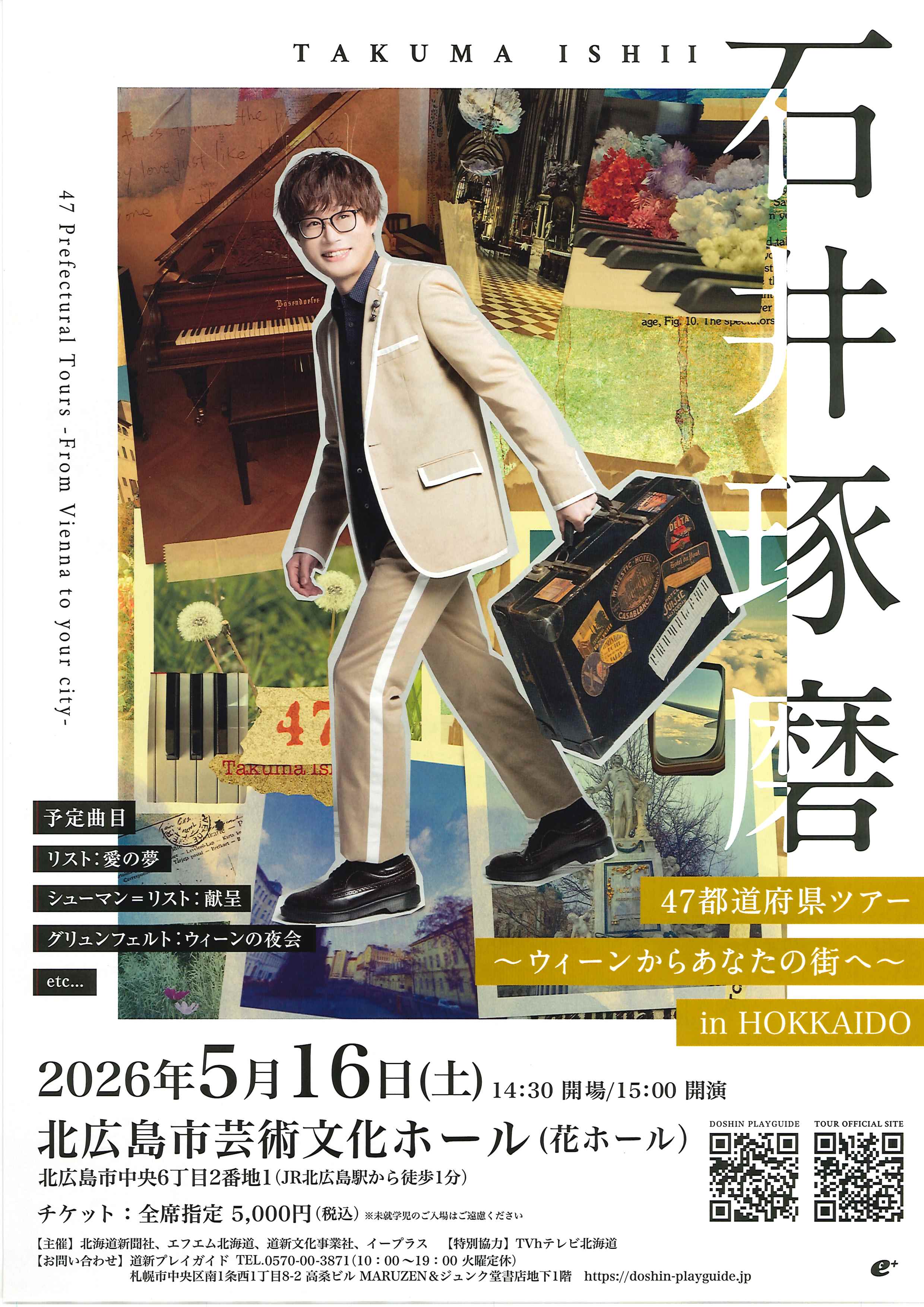 石井琢磨47都道府県ツアー ~ウィーンからあなたの街へ~ in HOKKAIDO 開催日2026年05月16日(土)開場14:30開演15:00会場北広島市芸術文化ホール北広島市中央6丁目2-1料金前売り:¥5,000当店での チケット取扱い無し 出演石井琢磨(ピアノ)お問い合わせ道新プレイガイド ℡0570-00-3871 演奏会情報一覧へ戻る