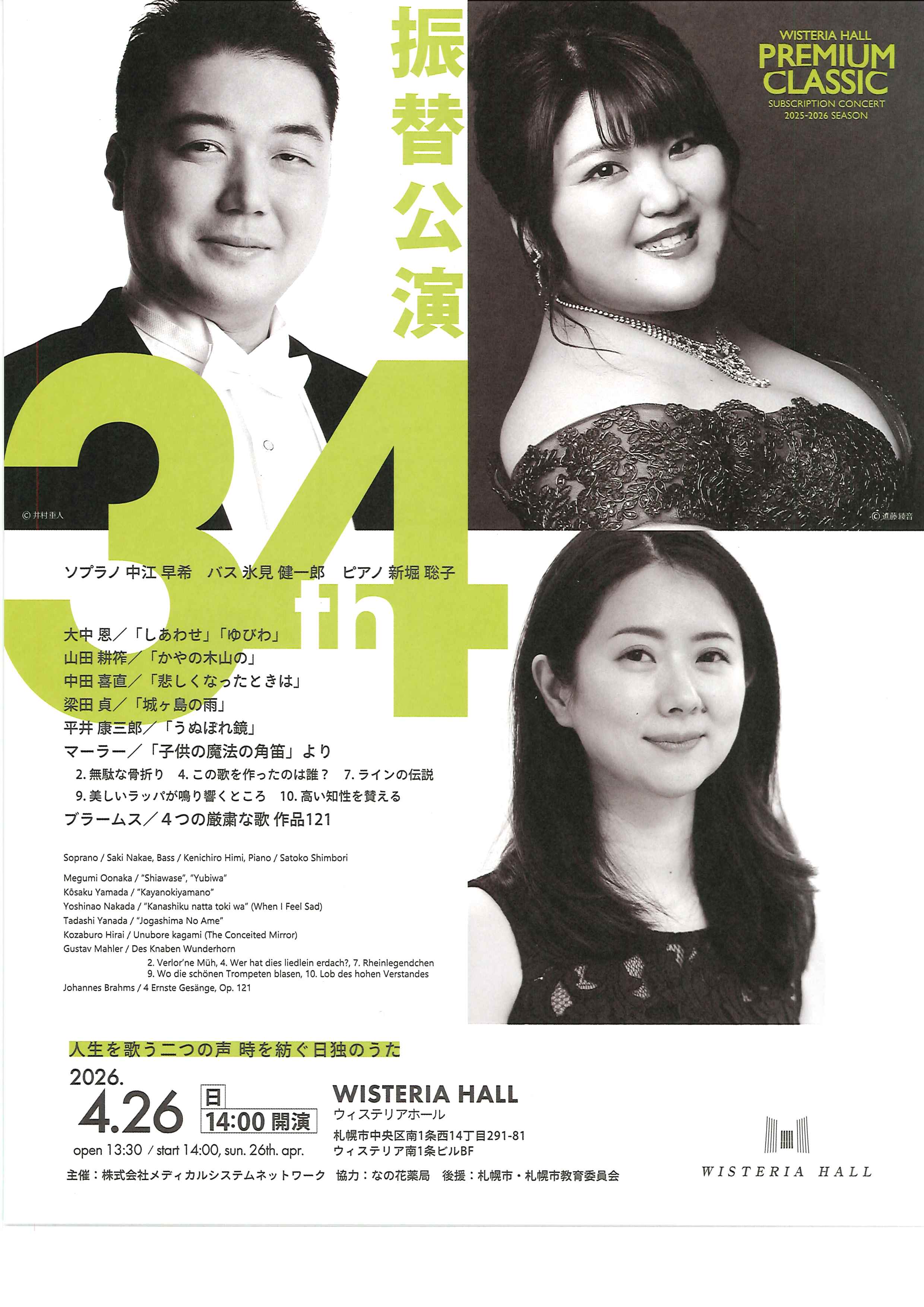 ソプラノ 中江 早希 バス 氷見 健一郎 ピアノ 新堀 聡子