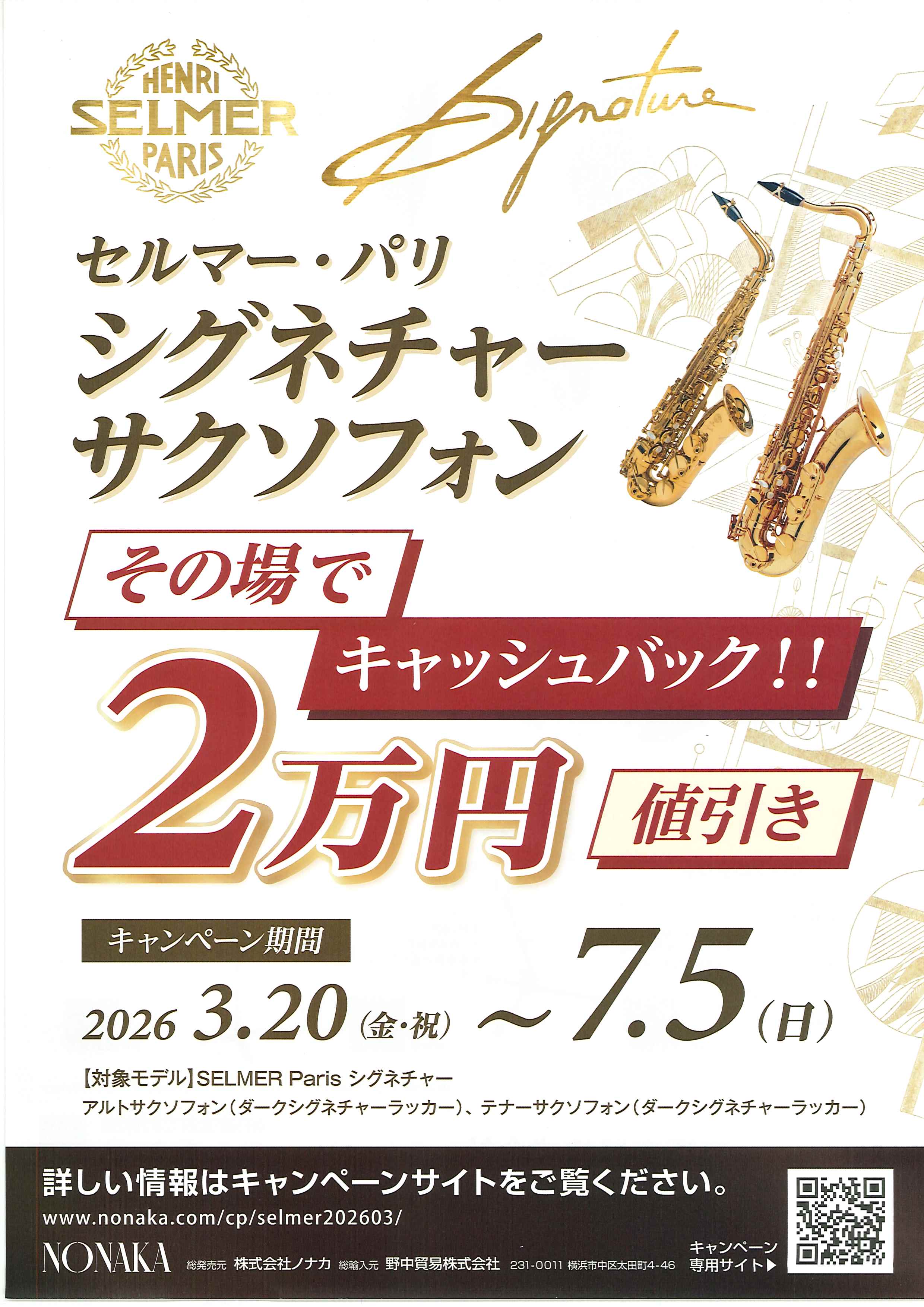 SELMER Paris シグネチャー サクソフォン〈その場でキャッシュバック!2万円値引き〉キャンペーン実施中